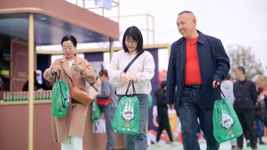 在2023张家界马拉松的马博会上,青啤展区人气颇高。在现场设置分领区、互动区、拍照墙、游戏互动等,更有惊喜礼物和啦啦队宝贝为选手助力加油。同时为每一位参赛的选手提供青岛啤酒经典罐一罐!