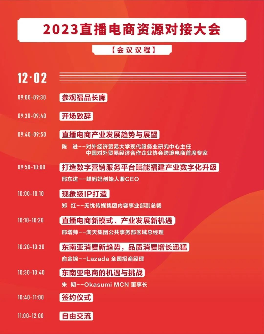 为进一步推动福建直播电商在引资源、促消费、稳就业方面的积极推动作用,“2023直播电商资源对接会”将邀请全国电商行业龙头企业、电商平台、MCN机构、电商主播、产业园区等参与大会。围绕平台搭建、渠道增长、爆品打造、流量运营等话题展开深度探讨。进一步搭建资源对接一站式平台,助力企业打造全行业不间断的深入宣传和线上线下战略布局。