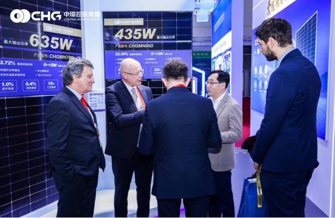 作为链博会五大链条之一的清洁能源链展区,主要聚焦绿色低碳转型等领域的前沿技术成果与产业应用落地。其中,中环低碳新能源亮相清洁能源链展区,展示了公司在清洁能源的布局、国际项目成果,以及光伏高效电池组件的新技术新产品等,与来自世界各地的专家、学者、客户等共同探讨绿色能源最新研究成果、前沿科学技术和未来低碳能源发展趋势。