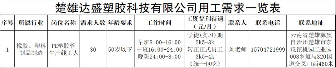 楚雄达盛塑胶科技有限公司,于2023年11月由山东万吉塑胶有限公司和楚雄市城乡投供应链管理有限公司联合共同成立。公司工厂位于桃园工业园区德动产业园新建钢构厂房内,租赁生产厂房4450m²投入生产。
