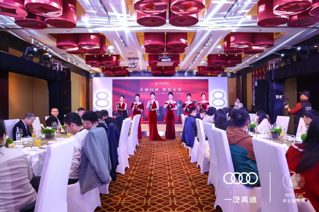 近日,茅台葡萄酒公司携手一汽奥迪东南区在浙江杭州西溪举办“卓越向新 领鉴未来”臻享品鉴会,茅台葡萄酒与奥迪A8L两大品牌亲密互动。