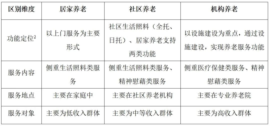 社区养老指以社区为依托,采取全托、日托、上门服务等方式,为社区或居家生活的老年人提供生活照料、医疗保健、精神慰藉三大类服务的养老方式。社区养老与居家养老、机构养老并列为我国三大养老方式,介于居家养老、机构养老之间,一方面具有居家养老支持功能,另一方面能够延缓老年人入住机构的时间;同时在功能定位、服务地点、服务内容、服务对象、对象范围四个方面呈现显著差异。