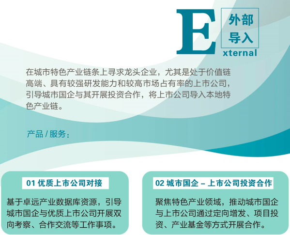 南京卓远基于自身强大的产业基础研究能力、丰富的城市国企产业整合经验、多元化的产业数据库资源以及卓越的产业全要素赋能能力,围绕城市高质量发展诉求,提出(IEP)产业振兴模式,旨在为地方政府、城市国企和城市产业相关投资人提供高效、创新、务实的综合解决方案并保障成功付诸实施。