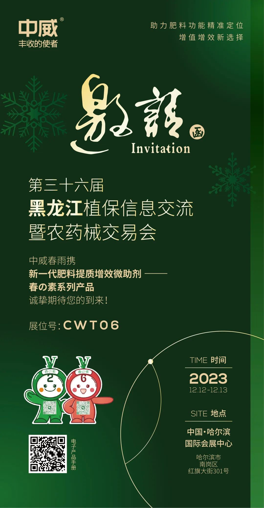 本届展会以“夯实植保基础,助力单产提升”为主题,,汇聚植保产品、技术发展新成果,展示农药械新技术、新产品、新装备,促进产销衔接,推动黑龙江及东北地区农药、药械产品更新换代,加快病虫草害防控技术提档升级,促进东北现代化大农业高质量发展。