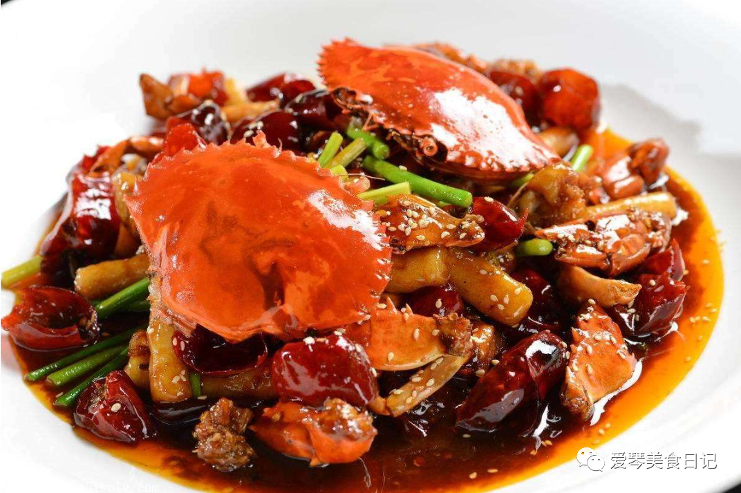 一道以螃蟹为主要材料的经典下酒菜。这道菜通常会使用大量的辣椒、花椒等香料,以及蒜、姜、葱等调味料,烹制出浓郁的香辣味道。蟹肉鲜嫩可口,与香辣味道搭配在一起,让人吃得停不