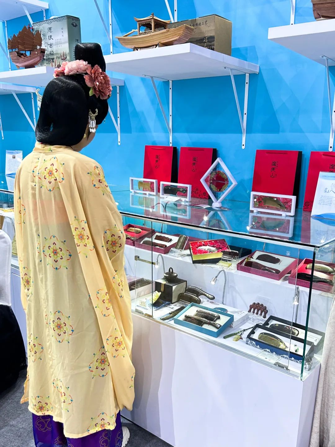 江苏神工文化发展有限公司携知名品牌“虞美人”梳篦受邀参展。充分展示了独具特色与匠心的常州精品梳篦,让来自全国各地的参观者们深刻感受到梳篦非遗文化的底蕴与魅力。