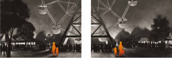 两个父母在照看孩子时所关心的事情几乎是一样的,但当父亲和女儿离开被摧毁的家园时,心境却截然不同。最后,两个家庭都登上了同一座摩天轮。