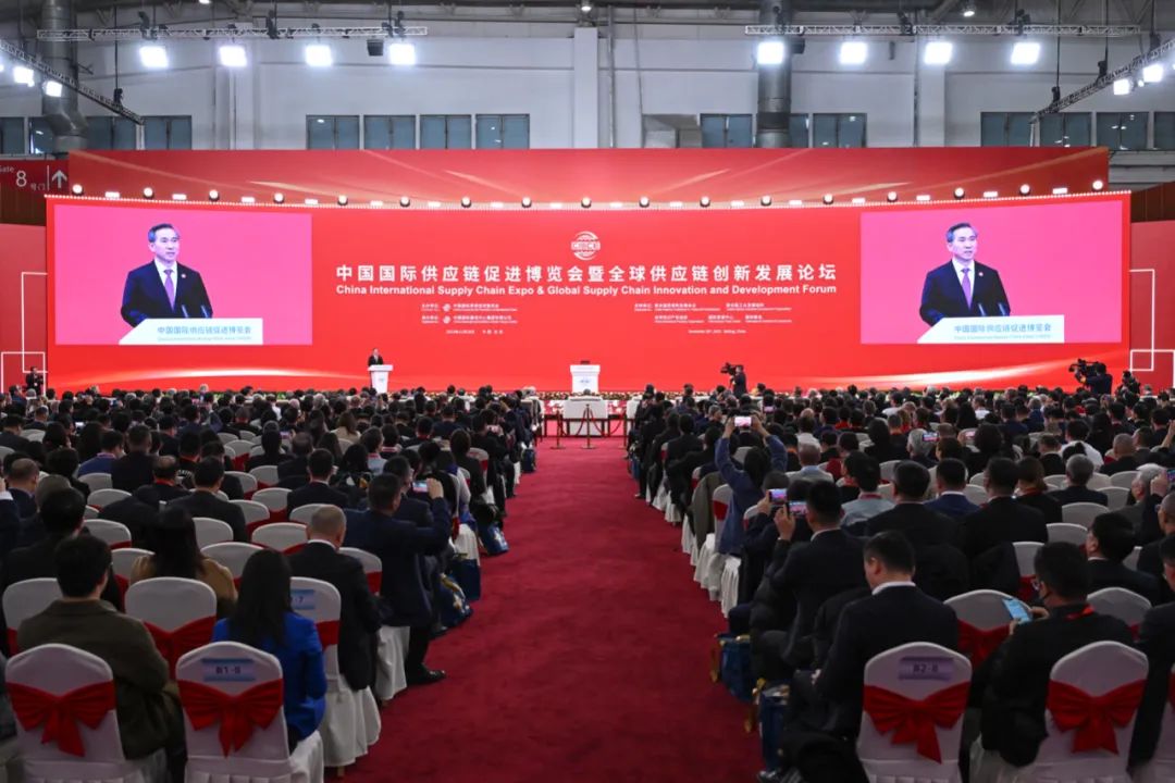 11月28日,首届中国国际供应链促进博览会开幕式暨全球供应链创新发展论坛在北京举办。