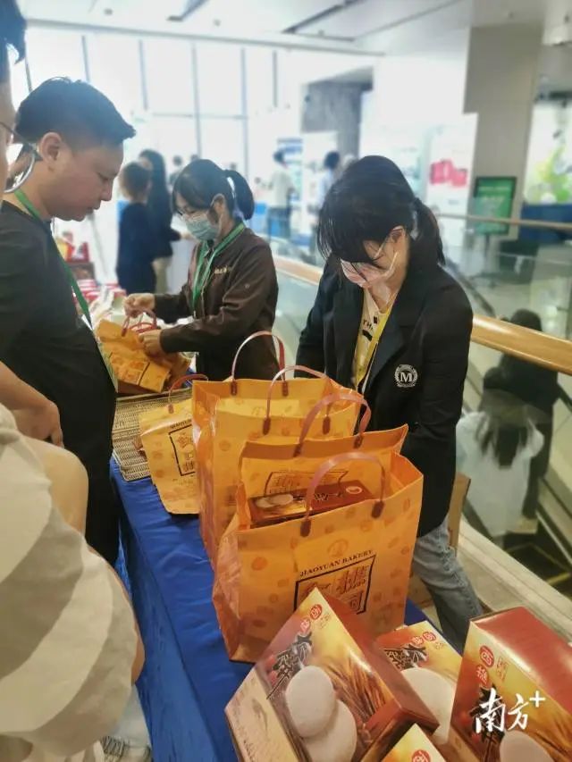 展馆里,西樵文商旅联盟设摊宣传推广西樵大饼、香云纱等产品。西樵镇供图