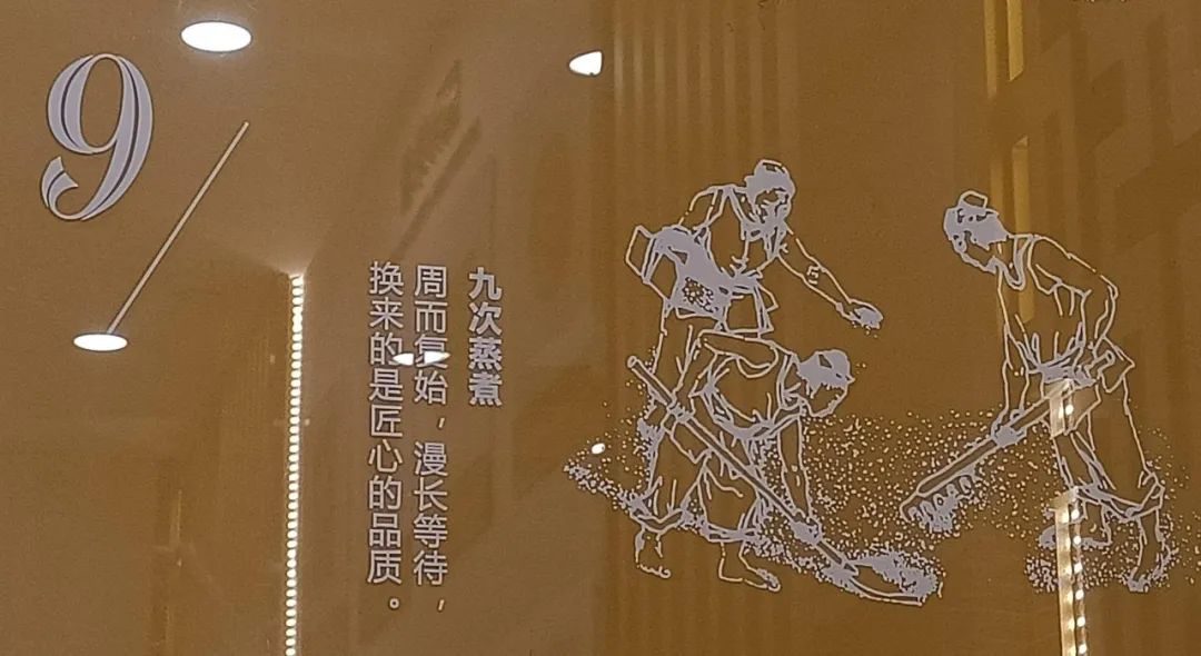 首次下沙(投料)后清蒸一次,糙沙(第二次投料)混蒸一次,前两次蒸煮酿成未过滤的酒,再进行第三次蒸煮,得到所说的熟糟。熟糟再经过摊凉、撒曲、堆积、下窖、封窖发酵、开窖取醅、蒸酒六个轮次循环,每个环节中都有一次蒸煮,整个过程共有九次蒸煮。