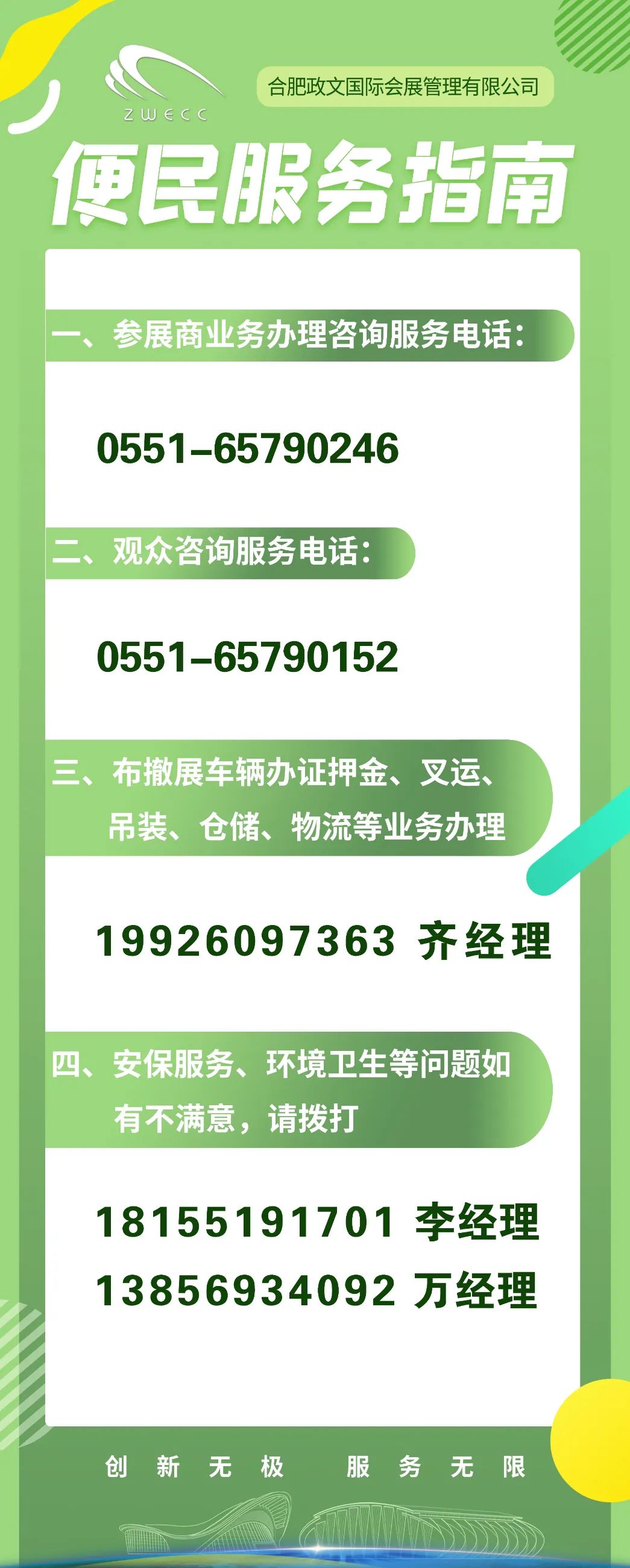 如果您对观展、参展事宜存在什么疑问,或是有任何宝贵的意见建议,欢迎按需拨打上述咨询电话,我们将全方位为您解疑答惑、排忧解难,竭诚提供服务。