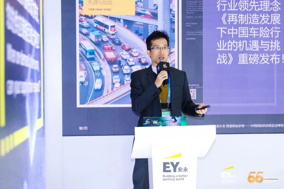安永1中国区精算与保险咨询服务总监姚佶博士介绍了安永与中国银行保险报联合发布的行业领先理念《再制造发展下中国车险行业的机遇与挑战》报告,解析了在国家“双碳”战略背景下再制造企业与保险行业未来共同合作发展的机遇与挑战。同时,姚佶博士梳理并分享了海外汽车再制造市场的前沿经验,并基于对国内头部保险公司及大型再制造企业开展的访谈及研究,提出了一系列建议,促进保险行业与再制造产业的深度合作,助力险企绿色发展。