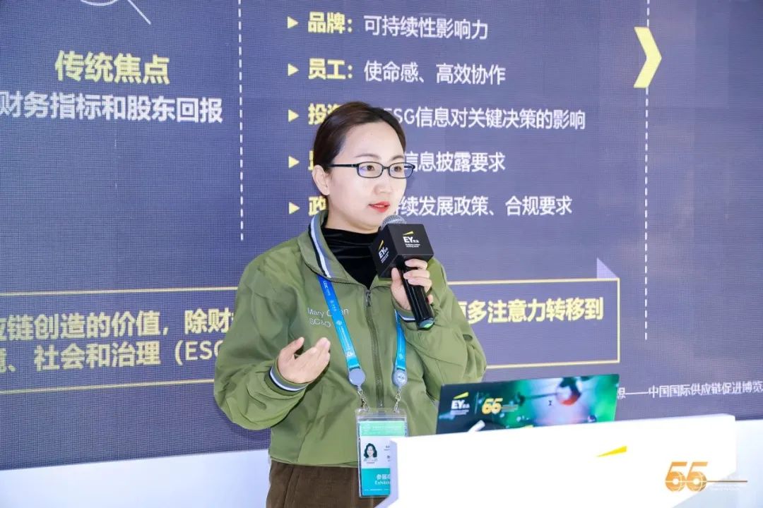 安永大中华区数字化供应链与智能制造咨询服务总监陈黎以“发展可持续供应链,打造行业新的竞争力”为题,分享安永对可持续供应链的发展洞察。可持续供应链的重要性在各行业日益凸显,市场正在驱动企业关注长期价值,并将可持续供应链成为创造长期价值的差异化因素。