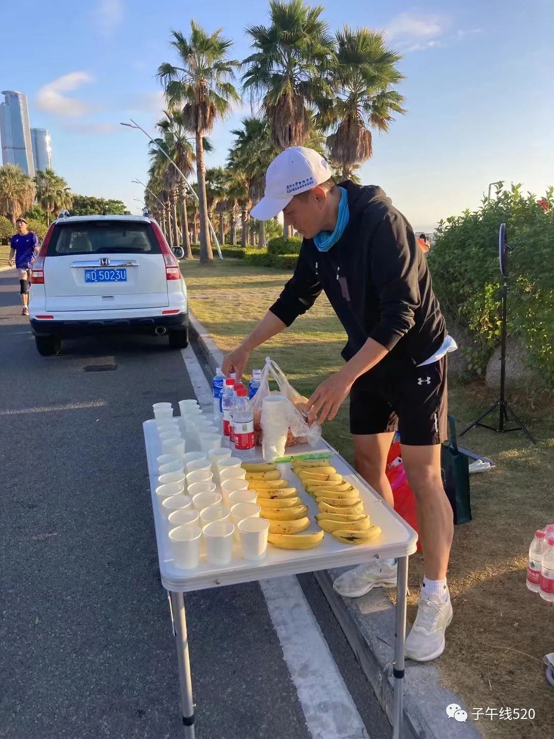 跑到10公里处,很多只跑10公里的小伙伴已经在原地吃着喝着休息了,钉神,longer,老王他们让我喝水,喝完赶紧跑,一会儿太阳出来就很热了。