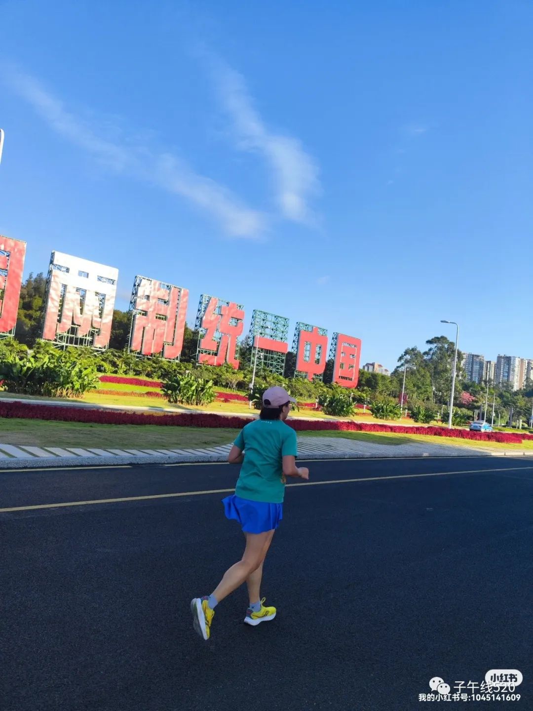 到会展附近了,碰到小东在往起点的方向跑,跟他打声招呼,从他身边轻轻溜过,两条腿是跑不过风火轮的,姐先到了。