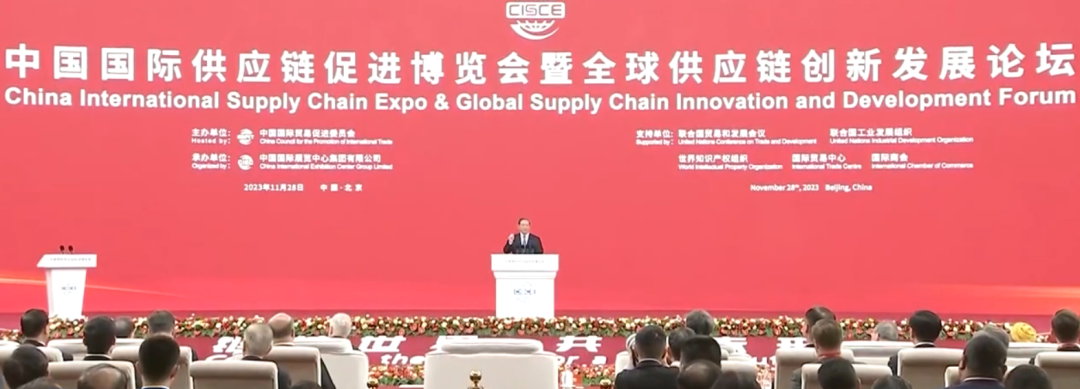 11月28日,首届中国国际供应链促进博览会(链博会)在北京盛大开幕,国务院总理李强出席此次链博会开幕式,并发表主旨演讲。
