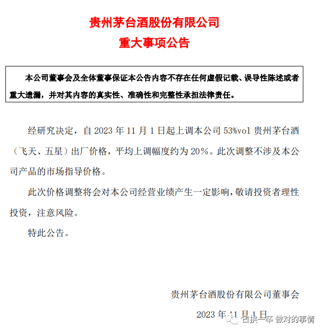 说到茅台,其在10月31日晚接近24点时,宣布提价20%,当时已经发了10月小结,就本月中记录了。