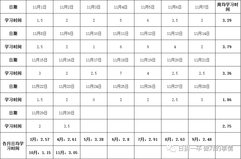 11月学习时间统计如下,很大一部分是用于阅读闲书,并没法做到全部用于学习投资。