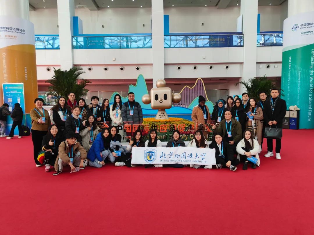 11月29日,由中国贸促会主办的首届中国国际供应链促进博览会在中国国际展览中心举办。在北京外国语大学国际交流与合作处组织安排下,十余名名北外外国专家和四十余名留学生前往展会参观,感受最新研究成果、前沿科学技术和未来发展趋势。在展会现场,师生们戴上Vr眼镜、坐上新能源汽车、品鉴绿色农产品,与高新技术产业面对面。