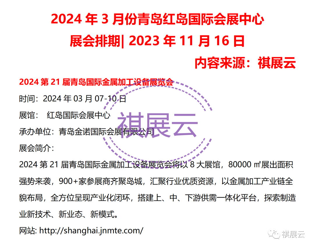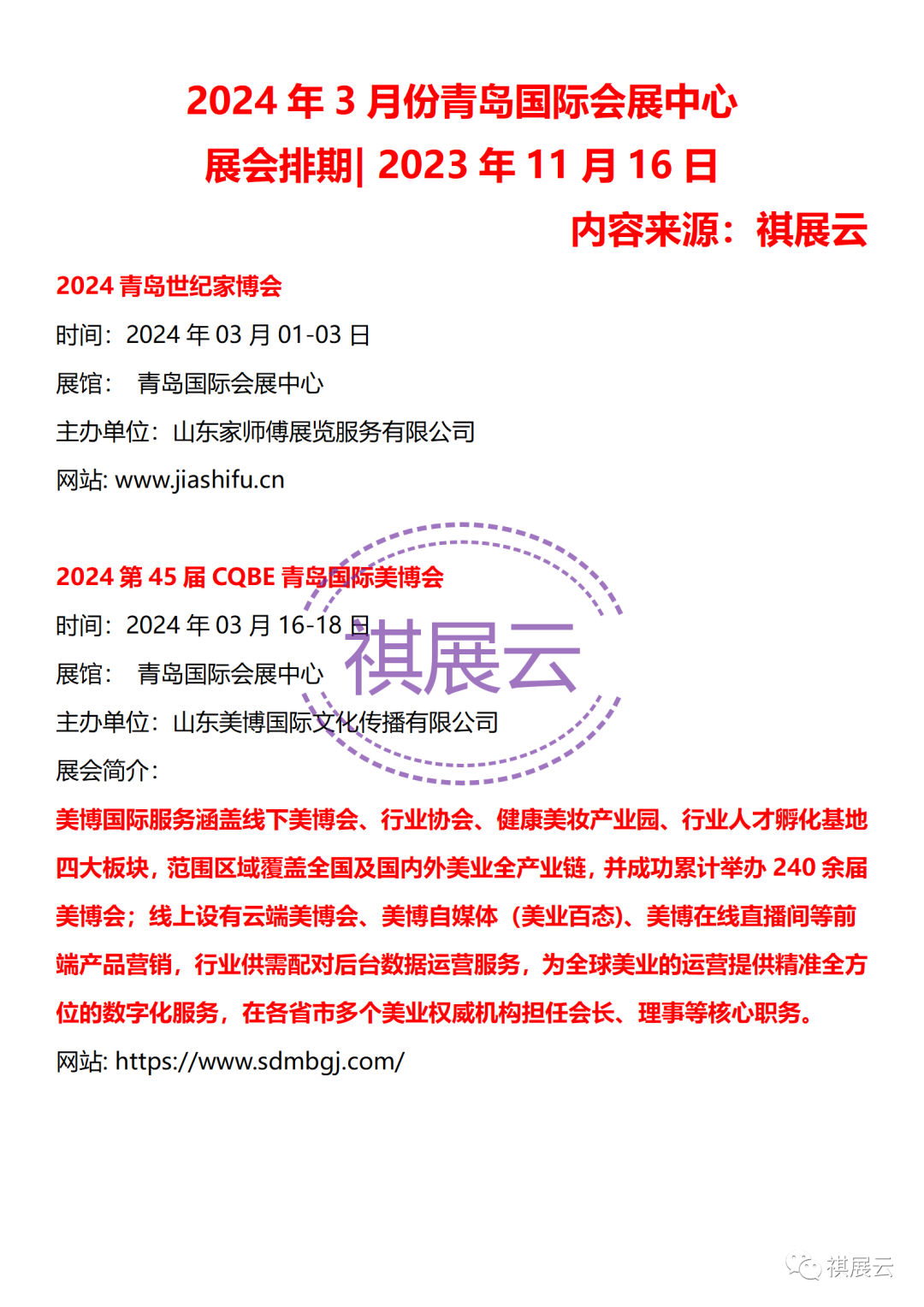 2024年3月份青岛国际会展中心/青岛红岛国际会展中心展会排期| 2023年11月20日