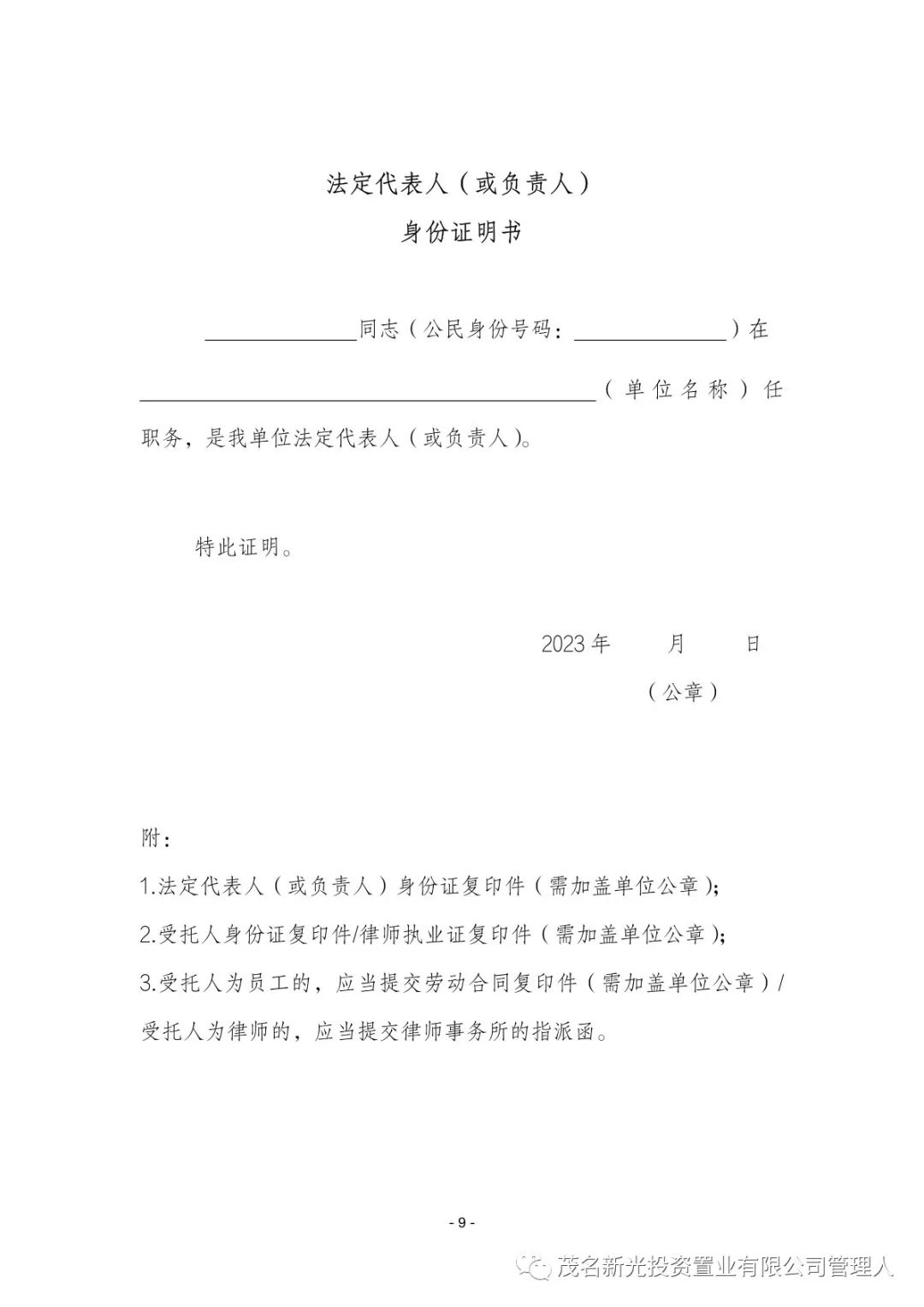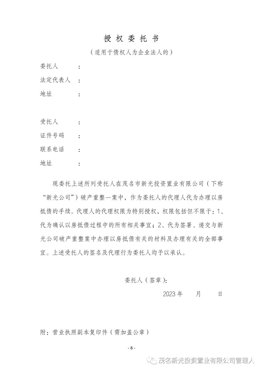 茂名市新光投资置业有限公司管理人