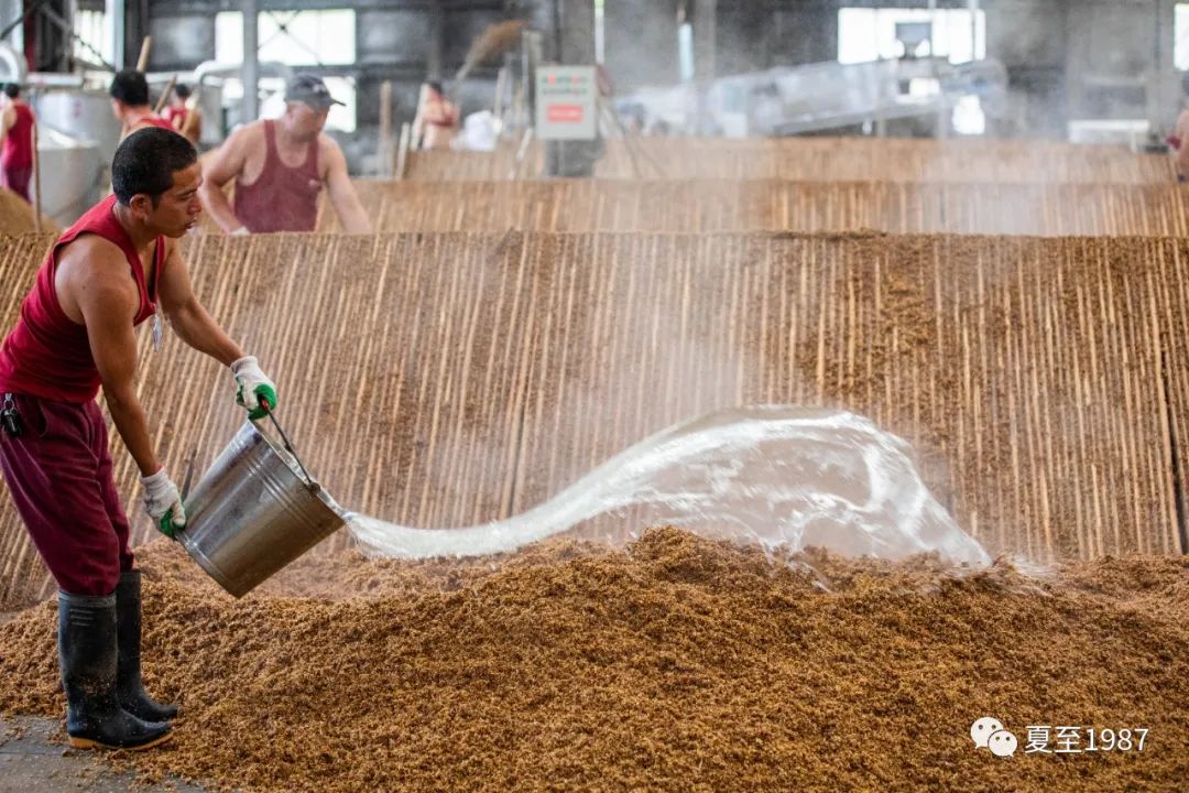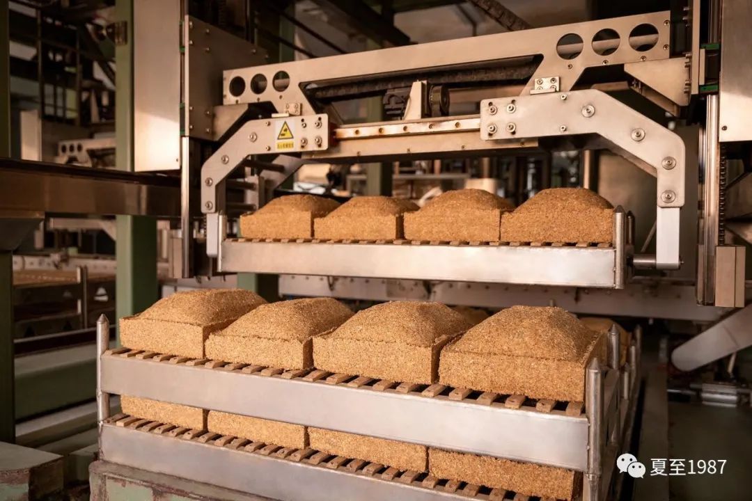 上面就是一个典型的工业化制曲车间,制出来类似于这样的大曲块,把它们按一定比例扔到窖池或酒缸里去。制曲的过程还是有一定技术含量的,因为扔进去的曲,成分不同,最终会导致酿出来的酒具体呈现什么味道。