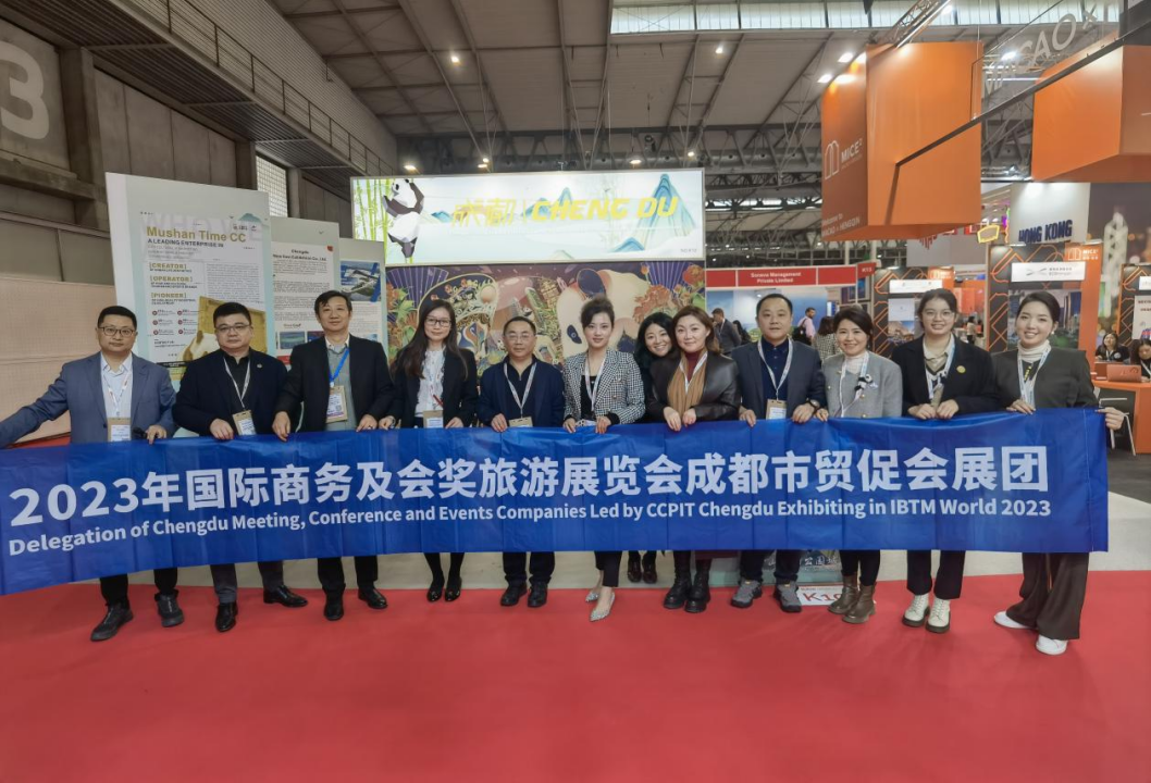 为拓展我市会展上下游企业国际合作业务渠道,展示和推介我市优质会展、旅游资源,2023年11月28-30日,成都市博览局(成都市贸促会)组织四川天府国际会展集团有限公司、成都新东方展览有限公司等5家我市会展、活动及商务旅游行业企业赴西班牙巴塞罗那参加2023年国际商务及会奖旅游展览会(IBTM World 2023)。