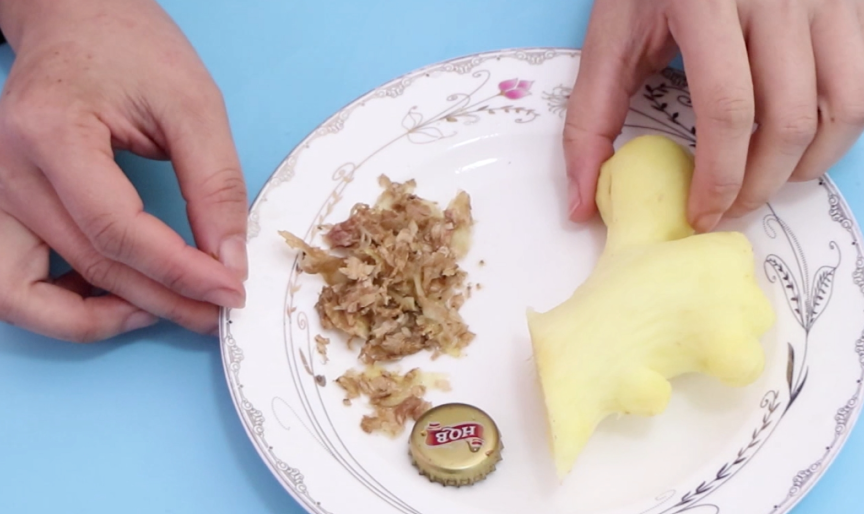 使用啤酒瓶盖刮生姜皮的操作非常直观:将瓶盖的边缘轻轻按在生姜表面,然后顺着生姜皮的纹理轻轻刮过。你会发现,生姜皮能够被非常薄而且均匀地刮除,即使是生姜上那些弯曲或凹凸不平的部分,也能被瓶盖轻松地刮到。