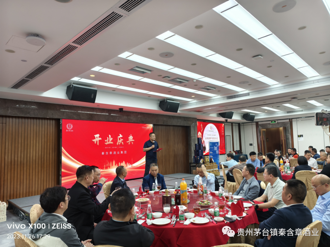 来自中国食品发酵研究院首席专家、副院长王德良、中科院微生物研究所高级工程师韩培杰、贵州省仁怀市酒业协会常务副会长、秘书长刘帮涛,秦含章酒业有限公司董事长李登科等领导和专家,以及秦含章酒业集团其他经销商朋友和当地秦含章酒粉丝、酒友聚集在一起,为秦含章酒文化体验馆隆重开业剪彩,并祝愿开业大吉。