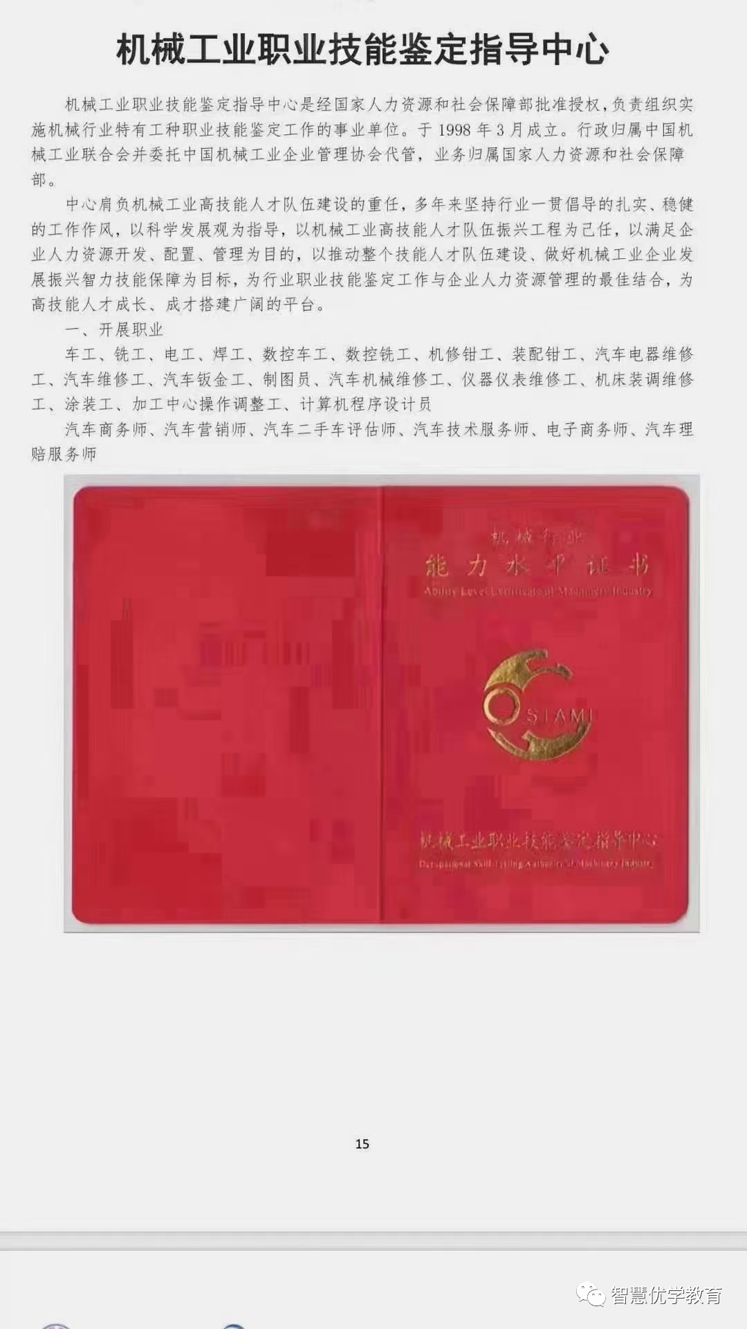 机械协会在原先13个职业基础上