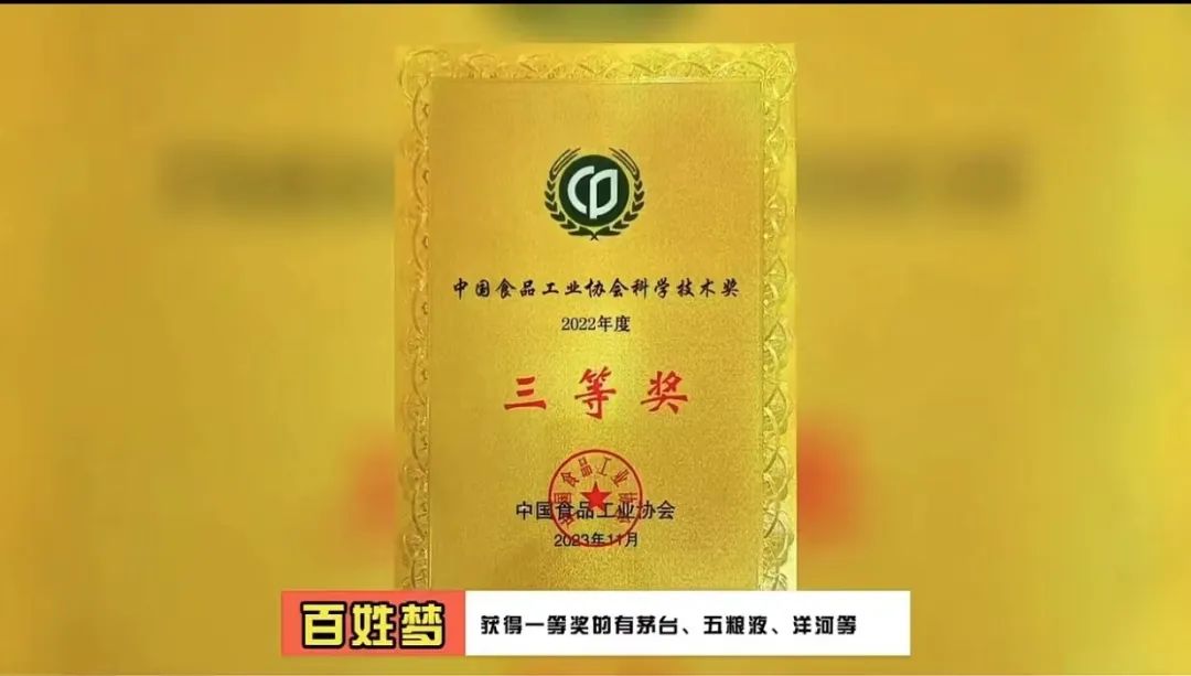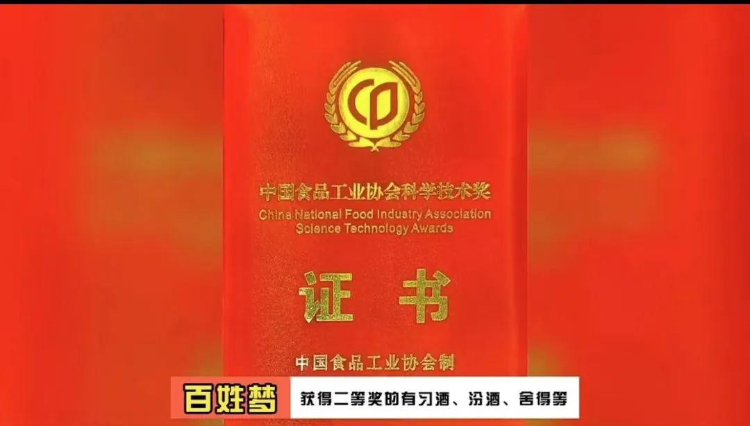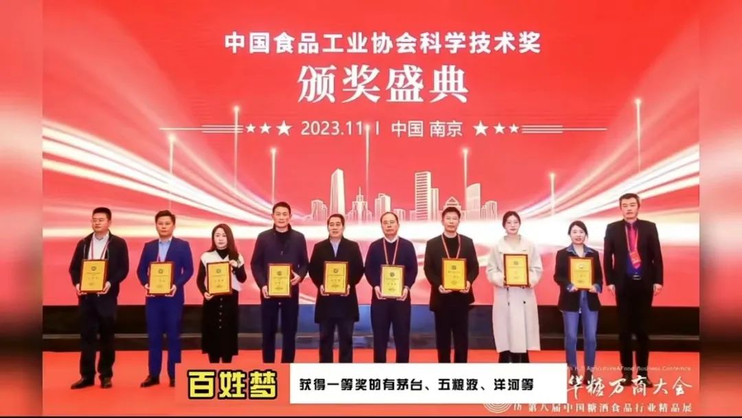 2023全国食品工业科技进步工作会议暨中国食品工业协会科学技术颁奖大会于11月30日在南京举行,唐山百姓梦酒业有限公司做为河北省唯一获奖白酒企业参会并荣获中国食品工业协会科学技术奖三等奖。获得一等奖的有茅台、五粮液、洋河等,获得二等奖的有习酒、汾酒、舍得等。
