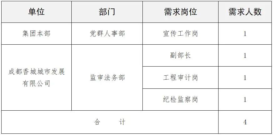 根据工作需要,按照“公开、平等、竞争、择优”的原则,成都香城投资集团有限公司面向社会公开招聘集团本部及下属成都香城城市发展有限公司工作人员,现将有关事项公告如下: