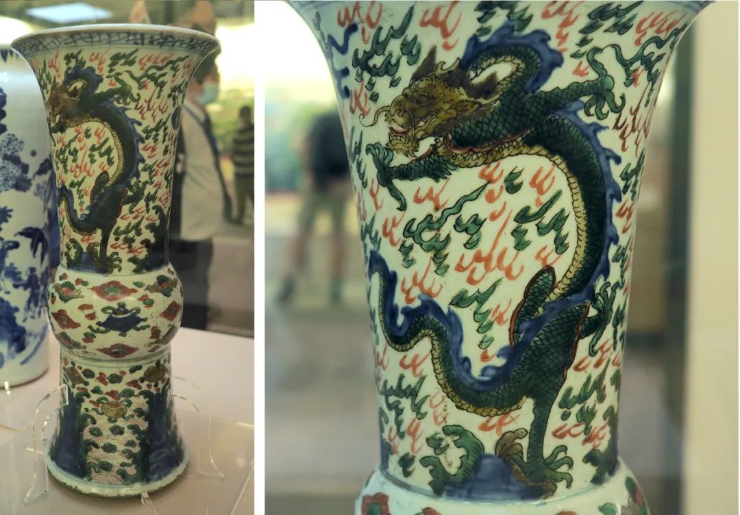 明末清初 景德镇窑青花五彩云龙纹花觚