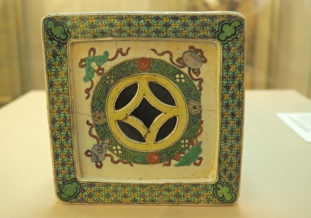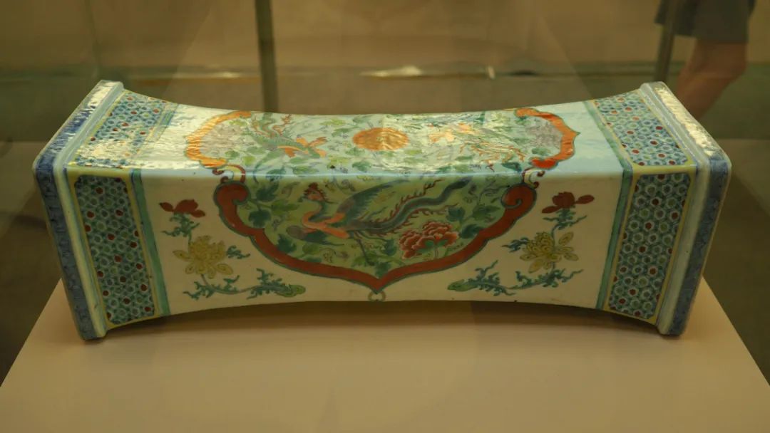 清康熙 景德镇窑斗彩开光凤穿牡丹纹枕