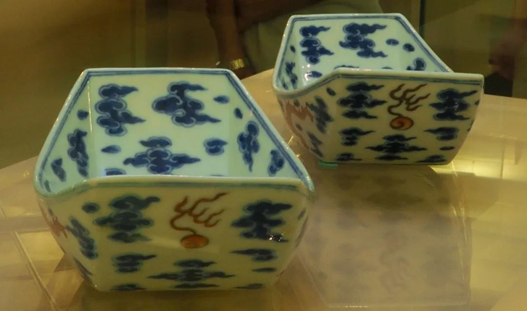 清雍正 景德镇青花红彩云龙纹船型杯托
