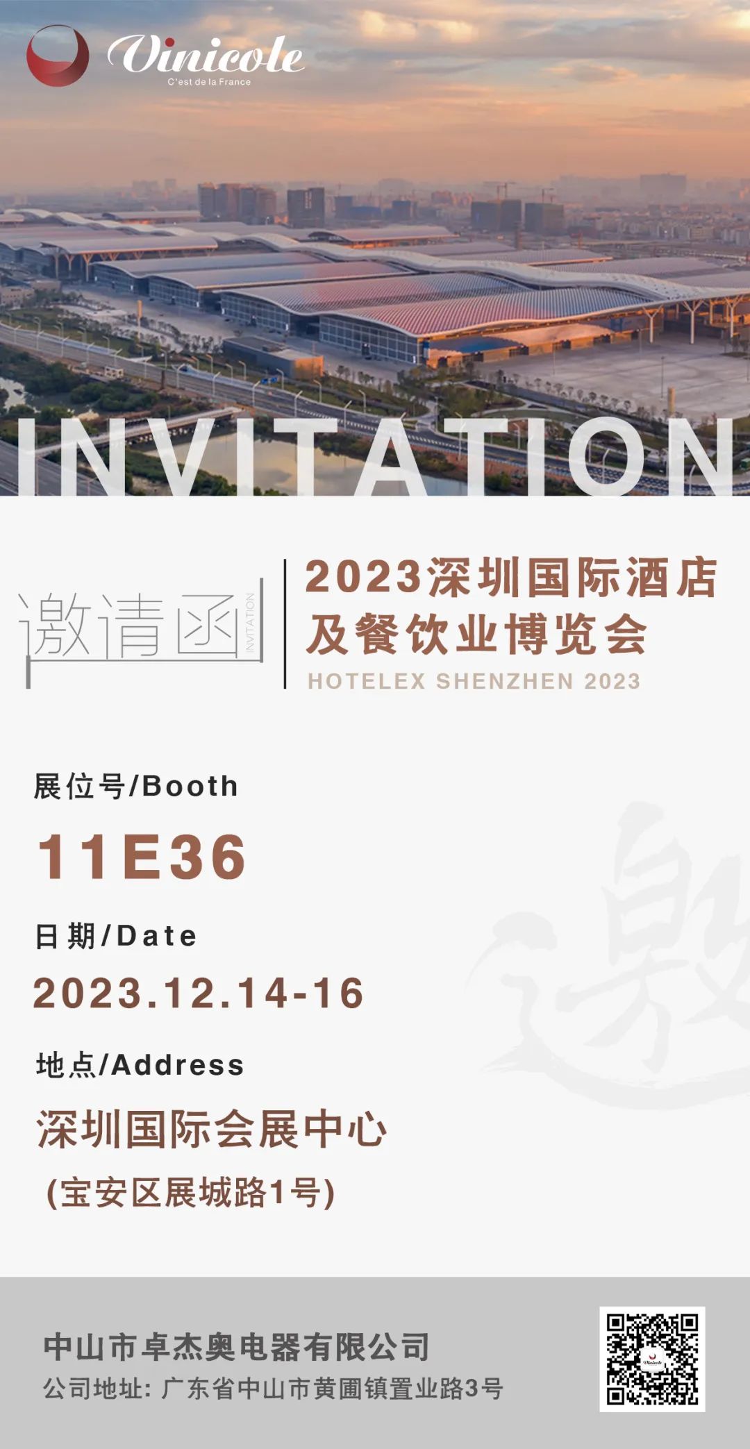 Vinicole诚挚邀请您亲临2023年12月份的博华深圳联展,展位号:11E36号。让我们共同期待这场盛宴,共同见证行业的腾飞与发展。2023年12月14-16日深圳展约定您,我们不见不散!