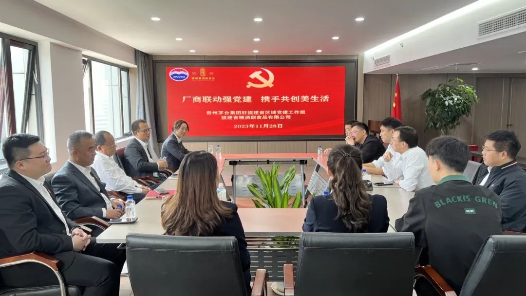 为推动党组织优势互补,促进党建引领业务协同发展,11月28日,福建省糖酒副食品有限公司与贵州茅台集团驻福建省区域党建工作组开展“厂商联动强党建 携手共创美生活”党建共建活动。福建省糖酒副食品有限公司及贵州茅台集团各单位驻福建省区党员代表参加活动。