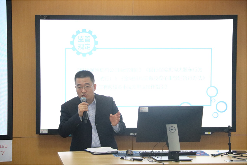 和泰人寿保险股份公司合规负责人郝鹏飞以《保险公司股东对保险公司治理的影响》为题发言
