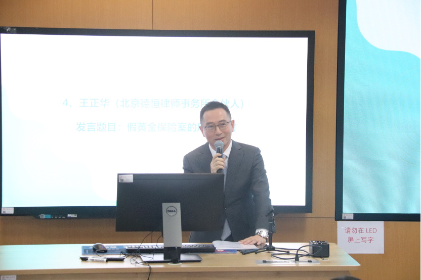 北京德恒律师事务所合伙人王正华以《假黄金保险案的风险应对》为题发言