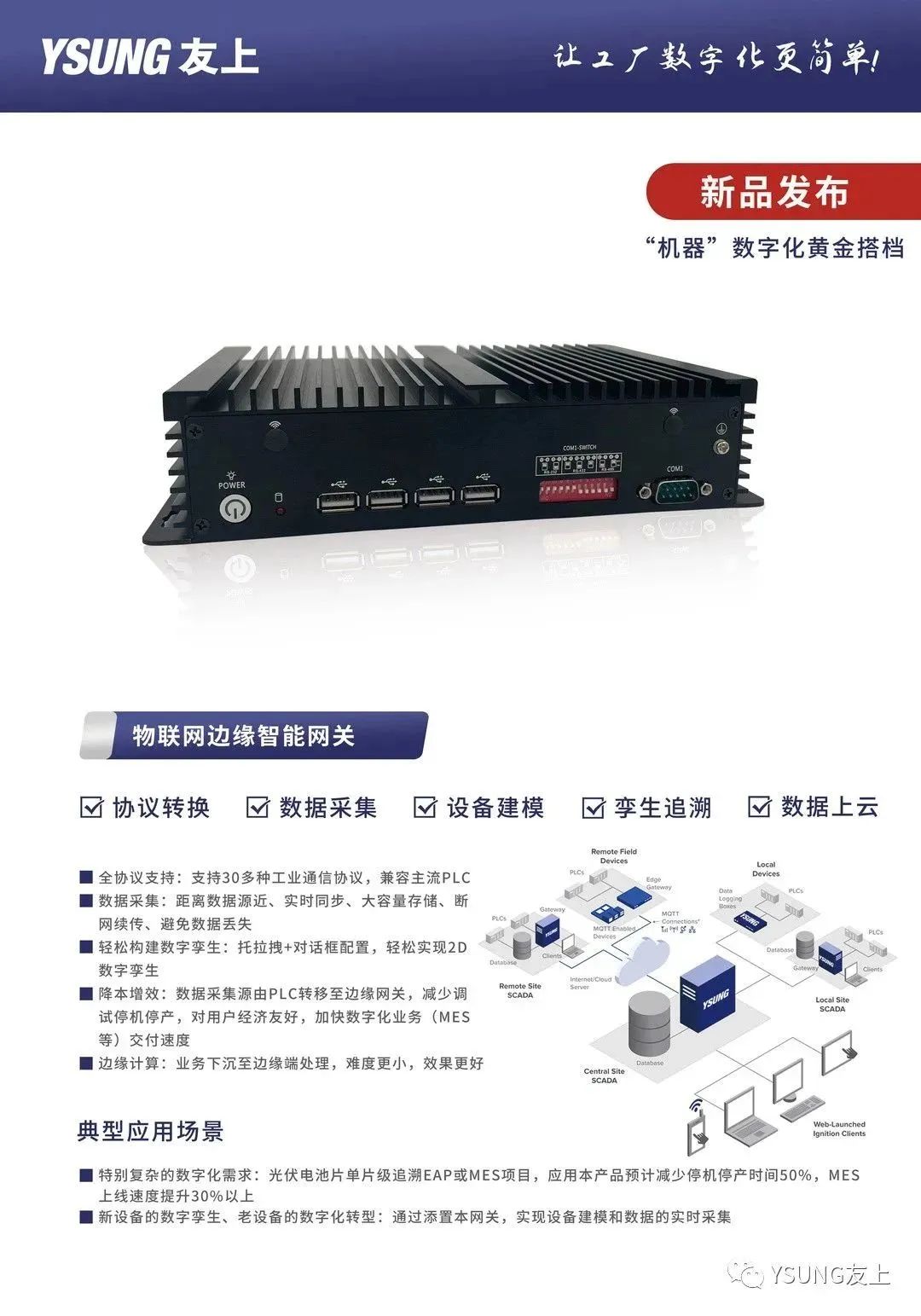 随着工业领域数字化转型的推进,YSUNG的智能硬件产品和i-DATA数智应用解决方案成为实现智慧工厂更高效、更灵活、更可持续的利器。目前,YSUNG的产品已广泛应用于光伏、锂电、新能源汽车、3C、物流等各行业,成为国产化替代的首选品牌。