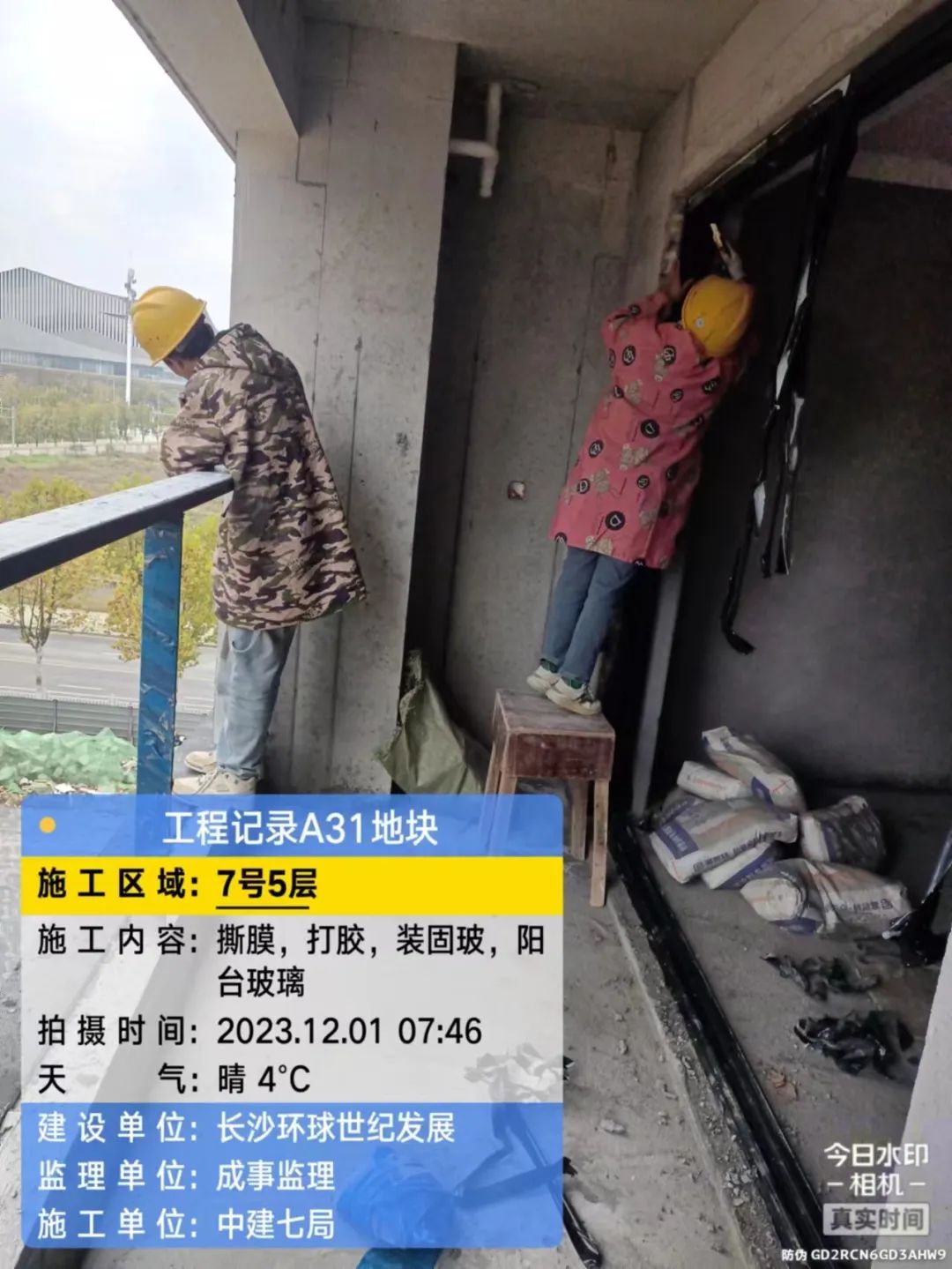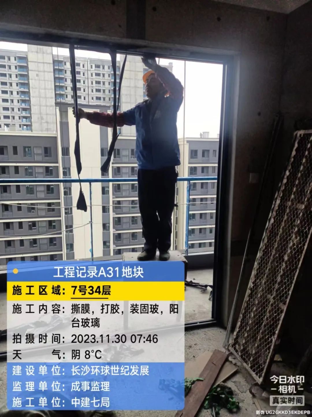 门窗、栏杆及防火门施工,固玻进场。