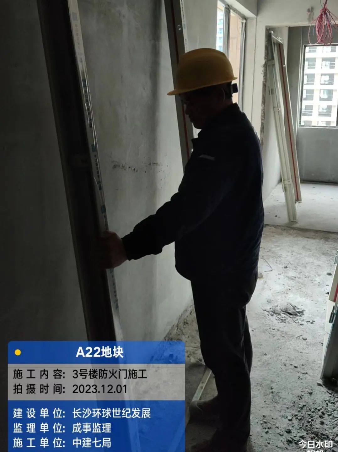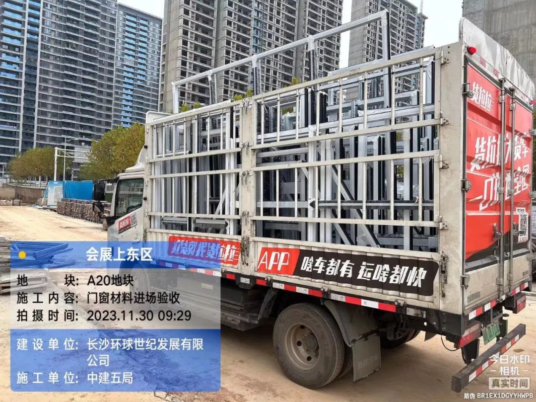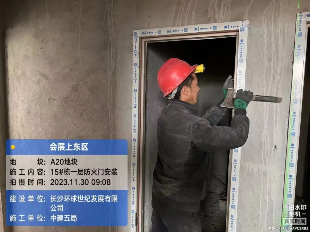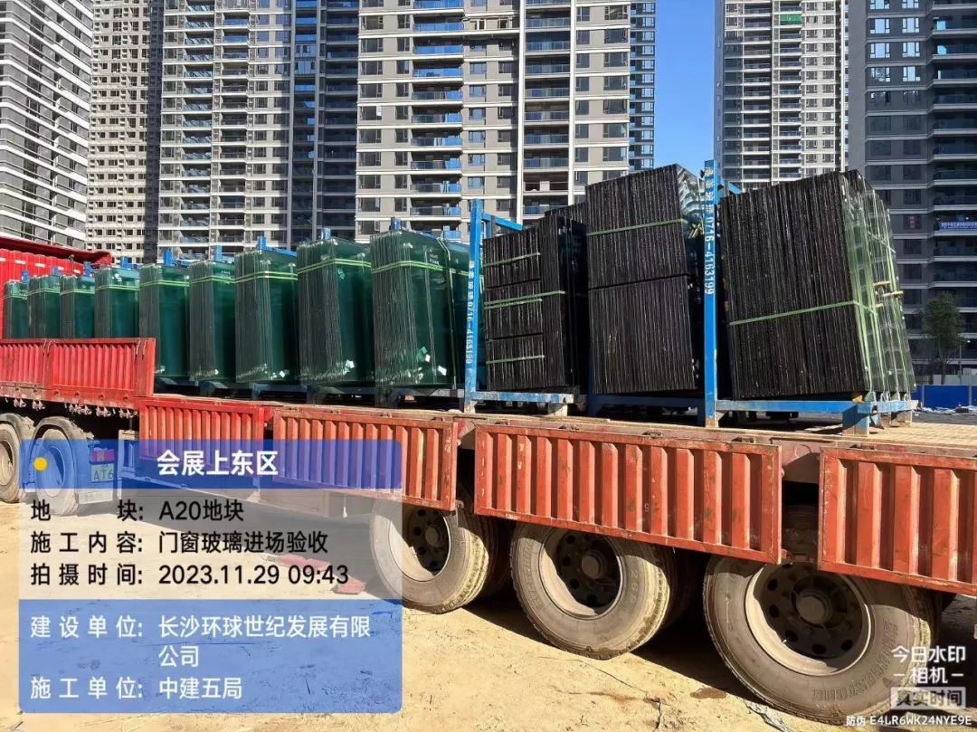 5#、7#、9#栋固定玻璃及推拉门上运材料,安装固定玻璃;防火窗、防火门扇安装。