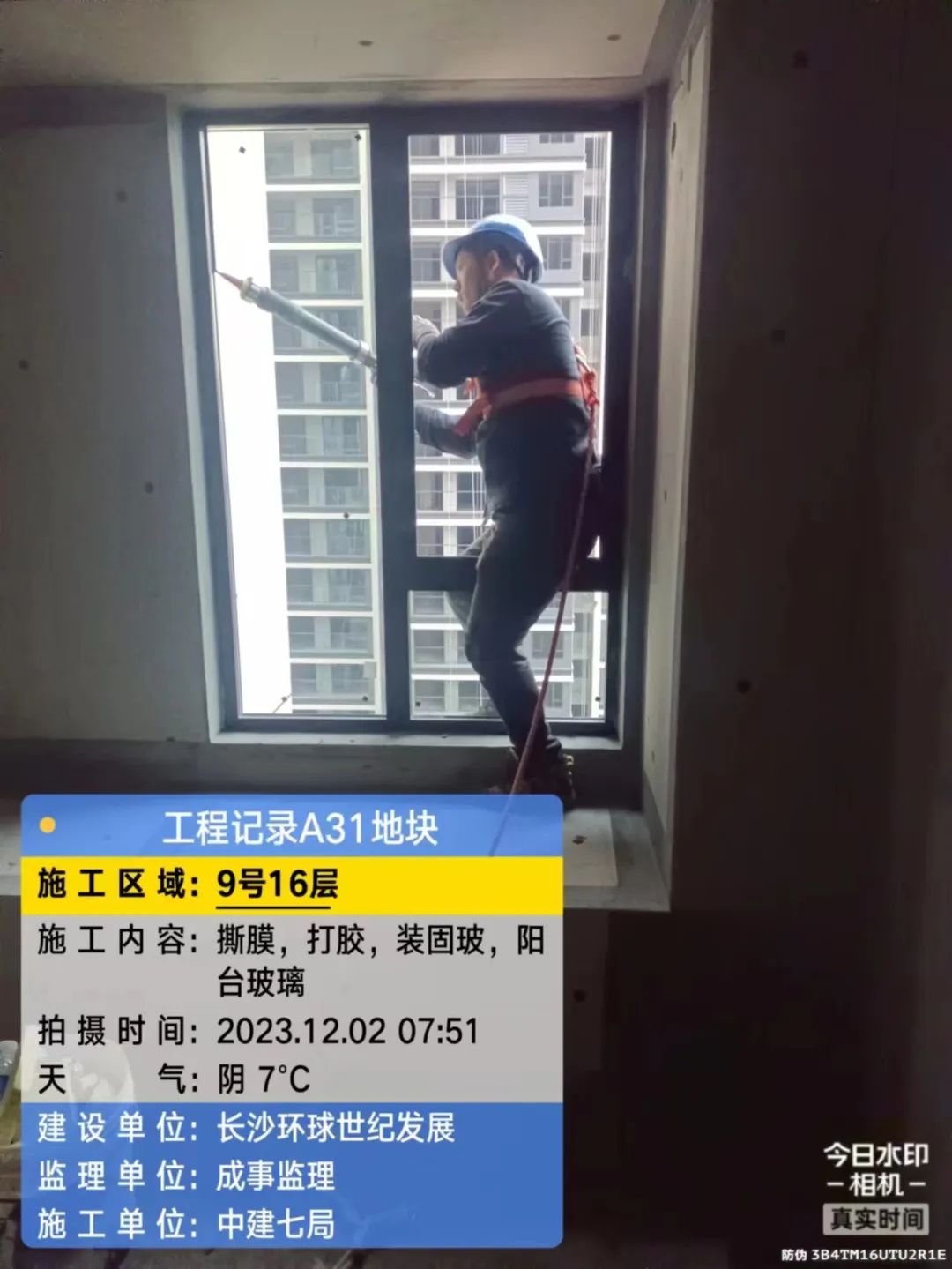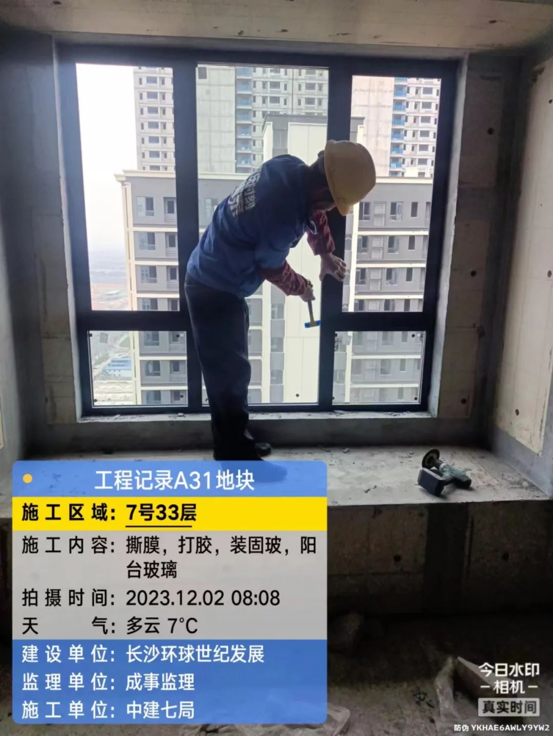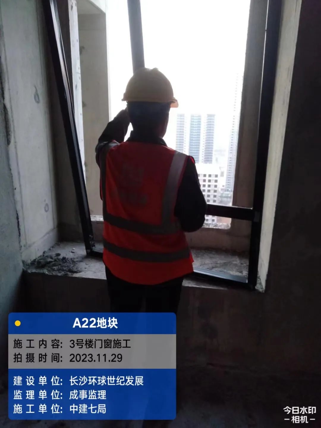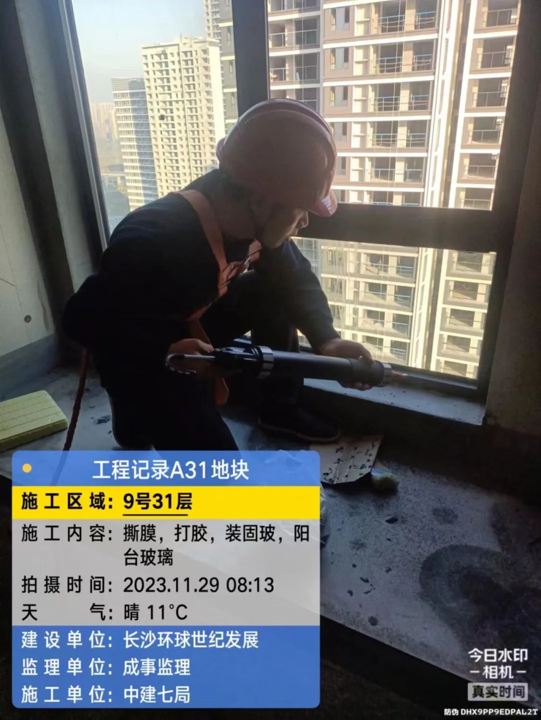 5#、7#、9#栋固定玻璃及推拉门上运材料,安装固定玻璃;防火窗、防火门扇安装。