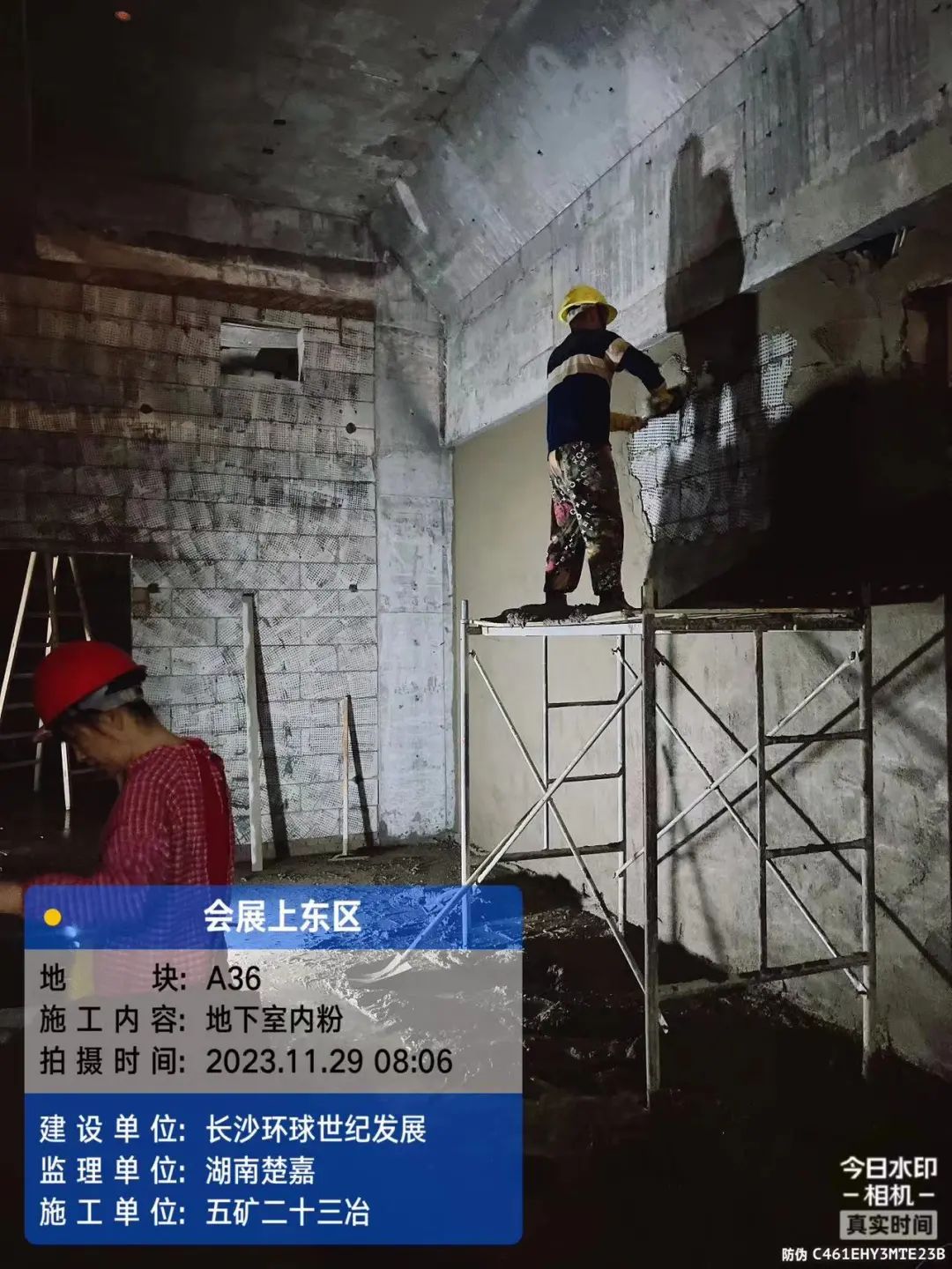 地下室抹灰、砌筑、消防施工;地下室顶板防水施工。