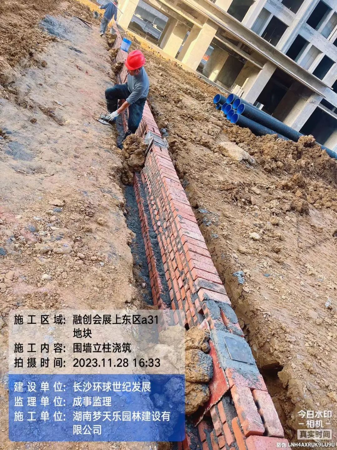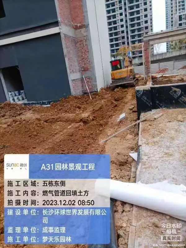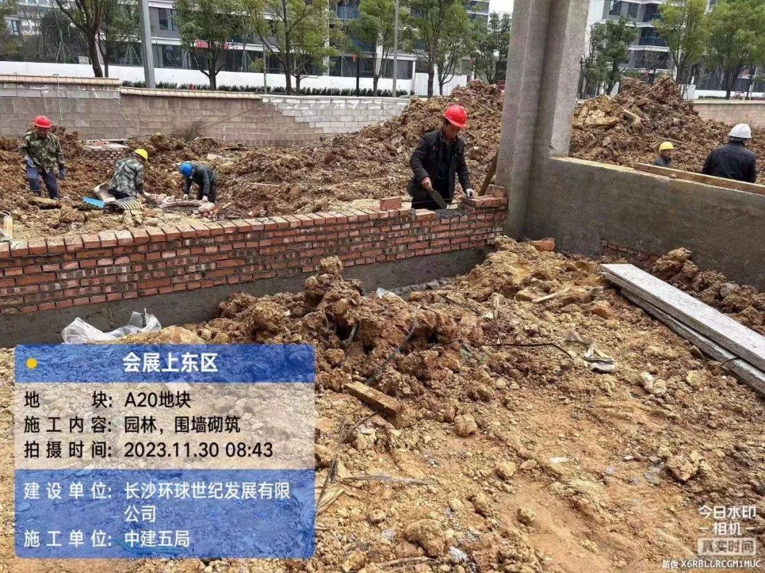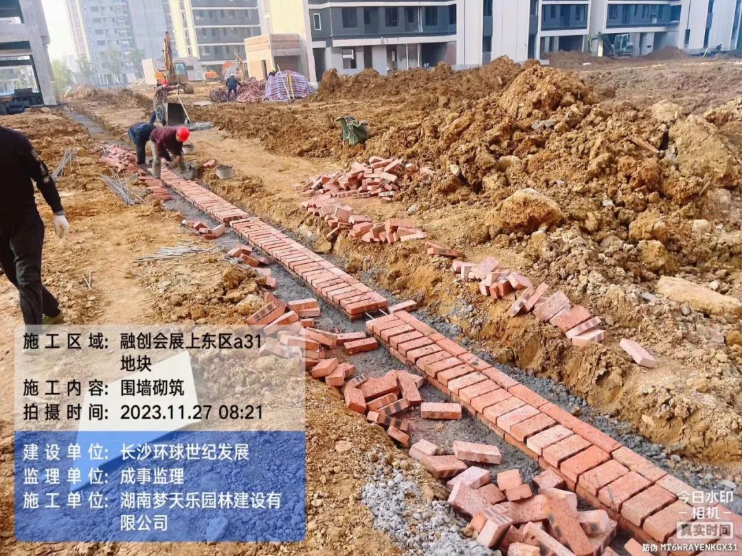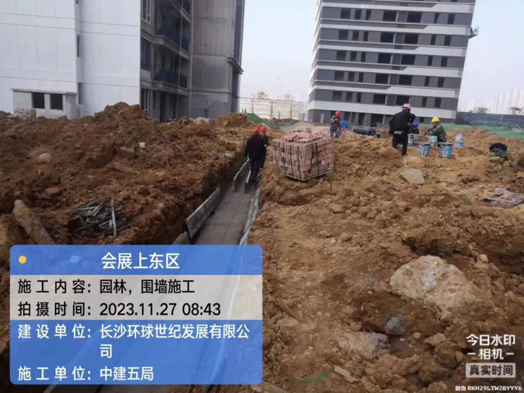 园林填土及围墙、管网施工。