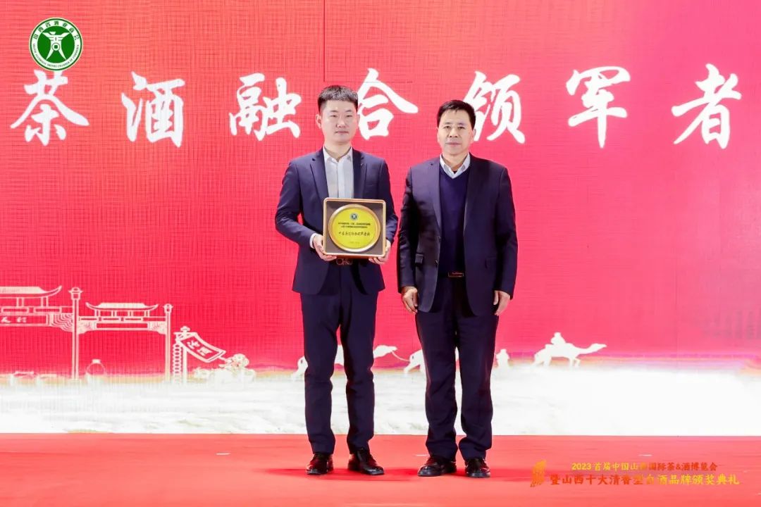 此外,为表彰云顶奇彩生态茶(北京)有限公司在茶酒跨界融合领域的实践和成就,大会还为该公司颁发了“茶酒融合领军者奖”,山西省茶业商会会长韩存兴为获奖单位颁奖。
