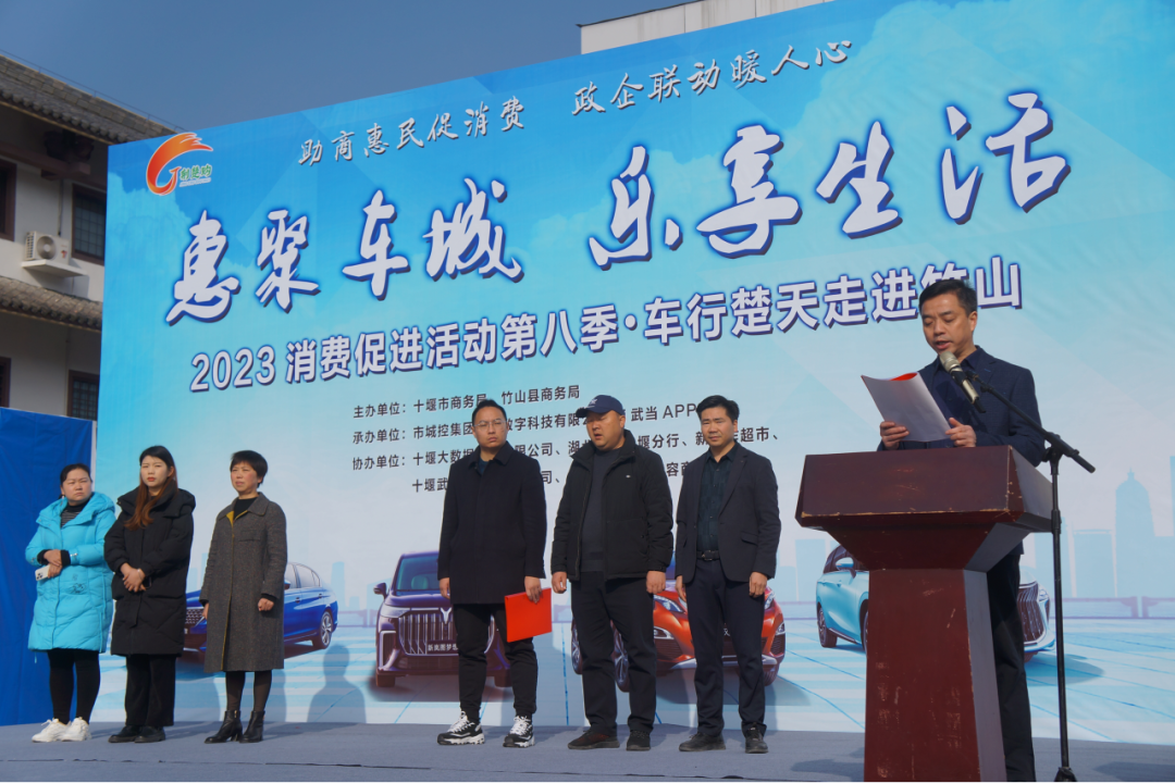 由十堰市商务局、竹山县商务局主办,市城控集团武当数字科技有限公司(i武当APP)承办,十堰大数据运营有限公司、湖北银行十堰分行、新合作超市、十堰武当云科技有限公司等单位协办的2023“惠聚车城 乐享生活”消费促进活动第八季·车行楚天竹山县专场活动正在竹山女娲文化广场举办。竹山县科经局党组书记、局长李荣山,副局长陈艳霞,湖北银行竹山支行行长助理朱治州及市县品牌汽车经销商代表出席启动仪式。