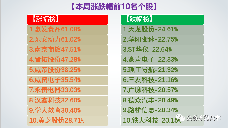 江淮汽车:与华为终端有限公司签署《智能新能源汽车合作协议》(江淮汽车负责打造生产基地实现合作车型的交付)卓翼科技:因涉嫌内幕交易、操纵证券市场罪 实控人夏传武被逮捕(前段时间公司股价出现过多个涨停板)恒华科技:与华为将在“电力+算力”等能源数字化方面开展更多的业务探索赛力斯:11月赛力斯汽车销量20318辆 同比增长145.92%山东路桥:子公司联合预中标56.16亿元设计施工总承包项目洪城环境:中标4.6亿元崇仁县城区生活污水处理一期项目(BOT) 恒通股份:董事长提议4000万元-8000万元回购公司股份友发集团:公司部分经销商拟1亿元-2亿元增持公司股份1、国有资本运营公司中国国新控股有限责任公司或将在接下来一周里持续每天增持(最近国有资本接二连三加仓A股,算是资金面的利好)2、美国发布电动汽车税收减免拟议新规则 限制中国企业(对何种电动汽车有资格享受税收减免待遇进行说明,并对电动汽车生产商从中国或其他竞争对手国家采购电池材料作出限制)本周五51股涨停,17股炸板,封板率为75%,东安动力7连板,惠发食品6连板,南京商旅、晋拓股份4连板,威帝股份3连板,大连圣亚、日海智能、先锋电子、信雅达2连板,伟时电子、中广天择9天6板,高鸿股份5天2板。盛天网络、万兴科技、昆仑万维、因赛集团、果麦文化20CM首板。北交所美登科技30CM首板。盘面上,两市近3000家个股上涨;板块方面,AIGC、短剧、游戏、影视等板块涨幅居前,民航、人形机器人、猪肉、重卡等板块跌幅居前。北向资金,全天净卖出49.97亿元,其中沪股通净卖出40.63亿元,深股通净卖出9.35亿元。最强人气:东安动力、引力传媒、惠发食品、中广天择、伟时电子(周五市场热点活跃度明显提高,连板队伍扩大)智能驾驶:晋拓股份、威帝股份、先锋电子、日海智能、启明信息、高鸿股份等(智能驾驶的涨停梯队排列比较整齐,后市还有机会)汽车产业链:东安动力、伟时电子、金龙汽车、西上海、震裕科技等(华为汽车每周都有热度,有热度就会有资金参与)人工智能:网达软件、力盛体育、南兴股份、昆仑万维、果麦文化、万兴科技等(人工智能风云再起,可以期待下相关持续性)数据要素:龙版传媒、中公高科、金桥信息等(本质上属于数字经济和人工智能的衍生产业)教育:昂立教育、学大教育、捷成股份、科德教育、佳发教育等(AI+教育属于人工智能应用端)文化传媒:引力传媒、中广天择、游族网络、盛天网络、姚记科技、上海电影等(视频AI初创公司Pika Labs最新估值2.5亿美元)电商:返利科技、苏豪弘业、因赛集团、三力士、焦点科技等(拼多多市值超越阿里巴巴,目前该消息仍然在发酵) 本周五,指数全天震荡探底回升,三大指数涨跌不一。今日北证50指数跌再度超4%。其中北交所两只复牌的人气股双双大跌。北交所的流动性远逊于主板,一旦短线炒作情绪下降,相关多数个股或将面临退潮风险。今日主板市场的情绪有所回暖,3板以上的连板股除了亚世光电以外,其余悉数晋级,其中核心高标东安动力更是以“地天板”的形式晋级7连板,6板的惠发食品也在短暂炸板后快速回封,反映出高位股相互卡位的现象已有所放缓。另一方面,短剧、算力等前期经历整理的热点板块同样延续着修复行情,此前出现A杀走势的引力传媒今日再度涨停,而高新发展再度涨停后已逼近前高附近,后续或有望走出二波。总体而言,高位股的亏钱效应得到了修复,再加上市场热点方向的延续性逐步加强,短线题材炒作环境整体向好,下周依旧可在热点间相互轮动的过程中寻找一些结构性机会。综合看,继周四指数小阳线后,周五市场探底回升收阳线十字星,并且两市的量能也有所提升,短线来呈现出一定的止跌企稳信号。盘面角度来看,市场的短线情绪同样回暖明显,并且午后AI应用方向、中字头板块的拉升也与指数形成了一定的共振。市场整体做多氛围逐步趋好的背景下,下周一的走势显得较为关键,若能够延续周五午后的放量拉升态势,短线迎来阶段性反弹的概率则大为提升。