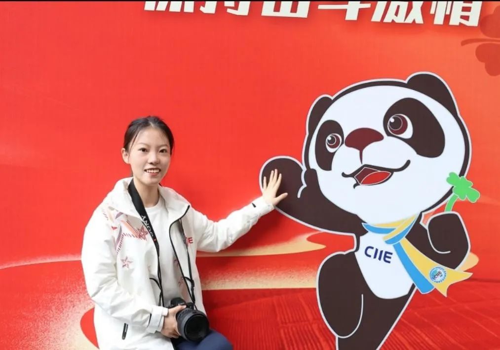 另一位“小叶子”是来自20级导演专业的彭思琪,作为“小叶子体验官”参加本次进博会。她的主要工作内容是通过进博会小叶子志愿者视角,以视频或图片形式,拍摄记录进博会场馆和其他小叶子的工作场面,运用网络媒体平台宣传进博会。