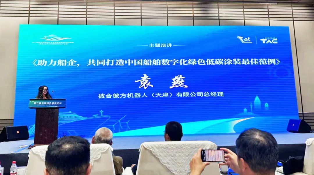 展会期间,彼合彼方联席总经理袁燕博士受邀出席由中国船舶工业行业协会修船分会主办的第三届中国绿色修船论坛,进行了题为《助力船企,共同打造中国船舶数字化绿色低碳涂装最佳范例》的主题分享,阐述彼合彼方爬壁机器人如何助力船舶修造产业链实现“双碳”目标,完成智能化、绿色化、数字化转型升级,获得了与会专家学者、业内人士的高度关注。